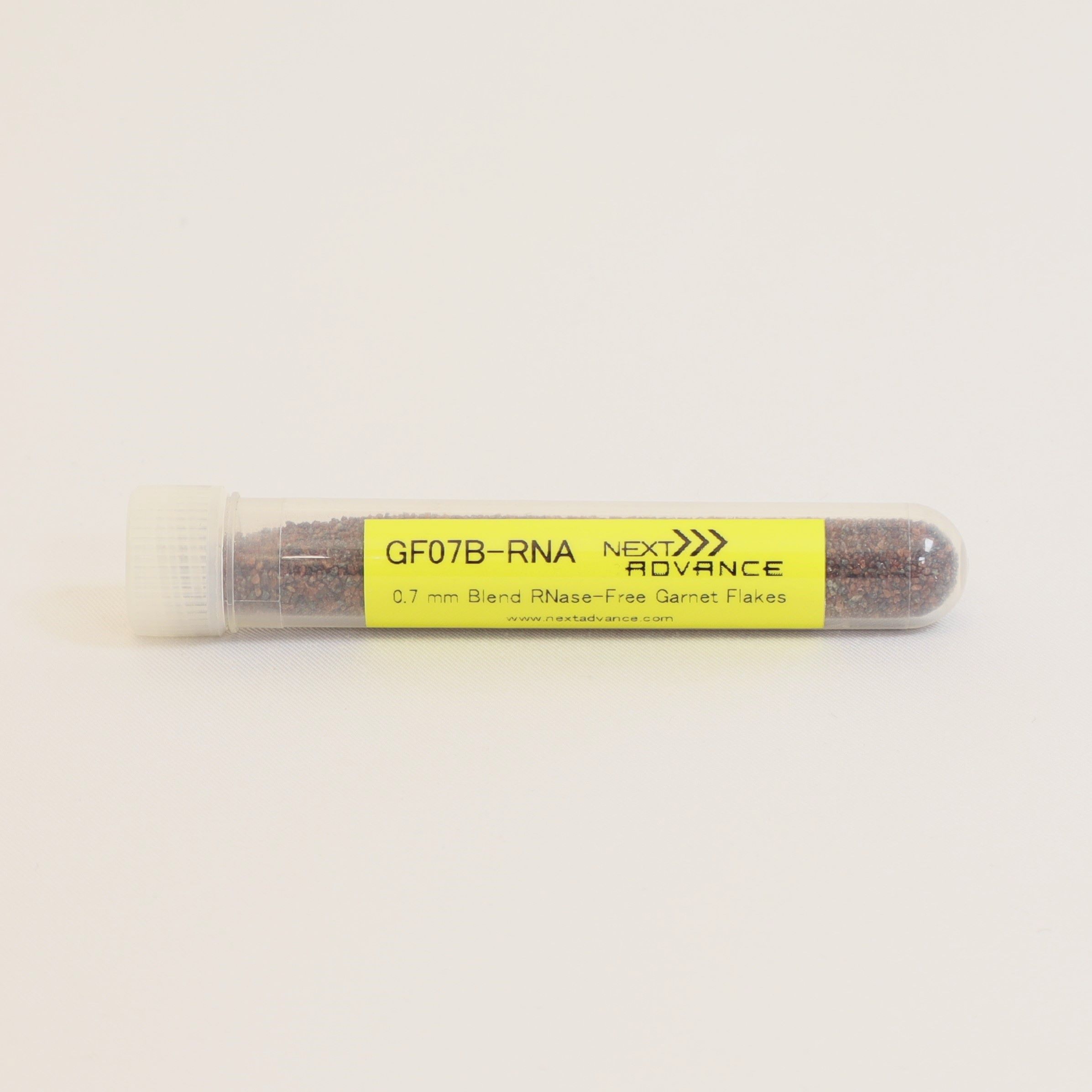 0.7 mm blend RNAse free garnet flakes (density is 2.4 g/cc) 4 mL package.